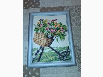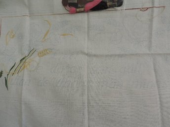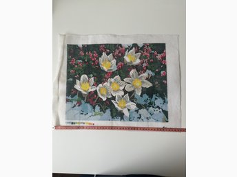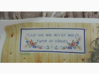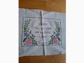 påbörjad bonad med garn "Livet är inte de dagar som gått ...."Läs i auktionen