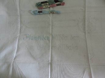 påbörjad bonad med garn "Framtiden tillhör dem ......