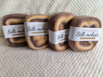 Silkmohair(01) 4x50gr., mohair 50%, silk 30%, polyester 20%, gul-brun, sista.