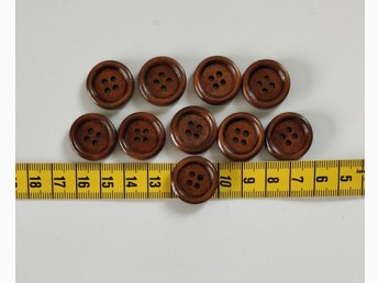 10 BRUN KNAPPAR, 2 cm. i diameter