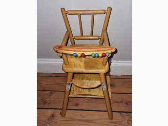 Barnstol / Gåstol i trä för dockan Vintage Retro 50-tal