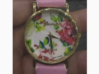Damklocka - Geneva Platinum Quartz med rosa armband
