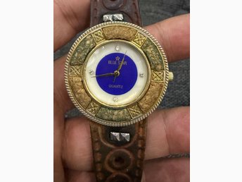 Vintage Blue Star Quartz Damklocka med Läderarmband