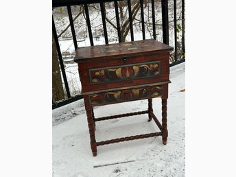 Norsk folkkonst Dekorativ handmålad stort träfat vintage unik allmoge