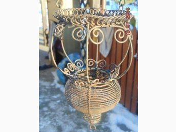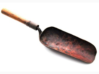Gammal antik skopa almoge hamrad koppar trä smide