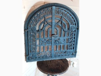 Cast iron art deco openwork fireplace door, made circa 1940s.