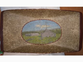 STOR Antik Allmoge Träfat / Träbricka / "Tråg" / Väggtavla med Järvdalen Motiv