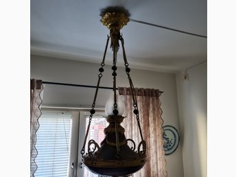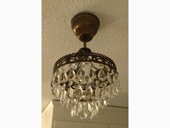 Retro Taklampa/fönsterlampa med Kristaller och mässing
