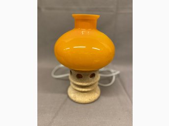 Retro. Bordslampa med fot av kork och kupa av orange glas
