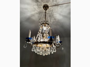 Fin äldre mörkare kristallampa KRISTALLPLAFOND kristallkrona+Fina prismor+Bra el