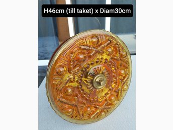 Vacker taklampa i mässing & amberfärgad glas, vintage 1960-tals