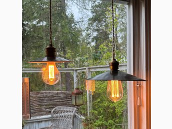 Två Vintage 60,70 tal blå metall taklampor Spinn design