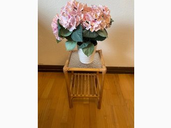 Piedestal, bambu / glas blombord piedestal i rotting bambu med råglas.