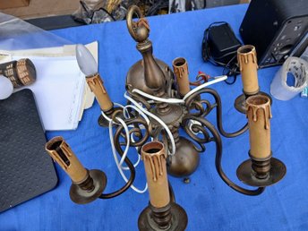 VOSS Fredrikstad 6-armad ljuskrona i mässing – norsk barock / restaureringsobjekt