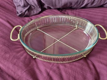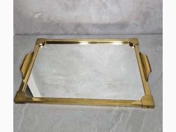 Bricka. Tung MÄSSING och spegelglas, 1900-talets andra hälft.