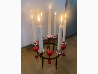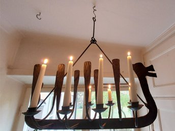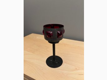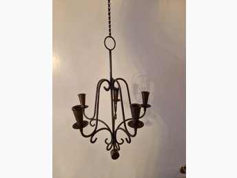 Vintage smidd ljusstake, design Gunnar Ander, Ystad metall, guldfärgade hängen *