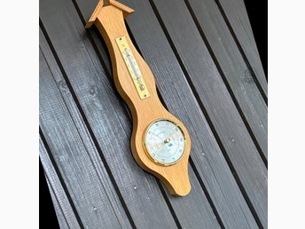 Fisher väderstation i trä – Barometer och termometer – GDR – Nästan ny