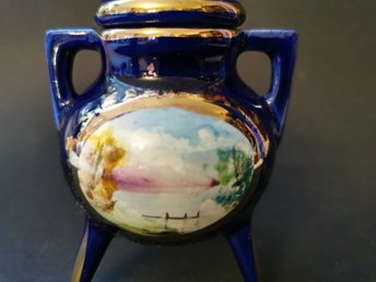 Helmut Krüger, burk med läderlook, porslin, lockask, stämpla, 1960-tal, Tyskland