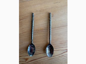 Två små skedar, kaffeskedar, 11cm långa, dekoration handtag