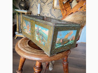 Antik Och Unik Plåtlåda - Vikingamotiv - Fornnordisk stil - Drakslingor