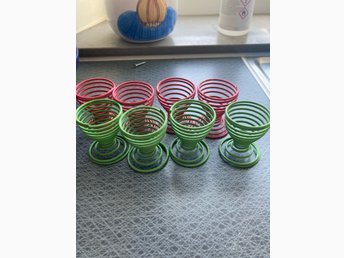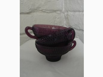 Te / frukostkoppar Vintage i lilafärgat mönstrat glas , vackra och i fint skick
