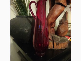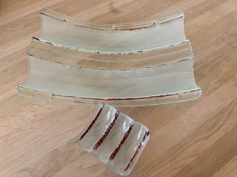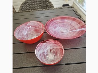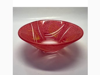 Nybro Sweden röd glas skål, dekorativ, design, handgjord.