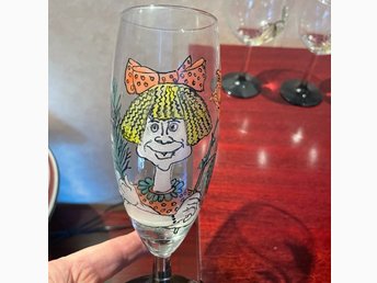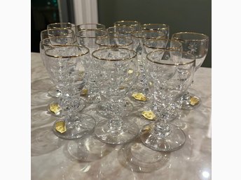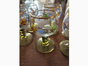 Glas Remmare med guldfärgad kant och druvmotiv på fot, 14st ,oanvända