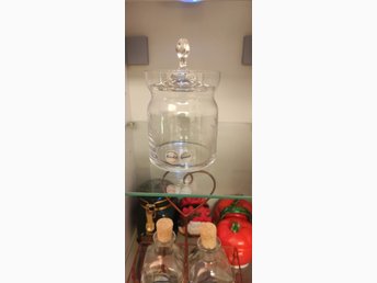 Stor vacker kristallglas skål på fot, detaljerad, glas fruktskål, godis, retro