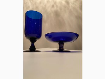 Gullaskruf blå pokal Gullaskruf / vas heta "Lågan" och blå skål på fot