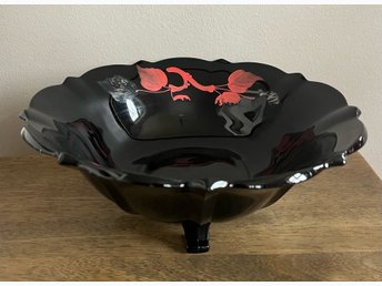 Svart Art Déco skål på fötter, glas , fruktskål, vintage, retro