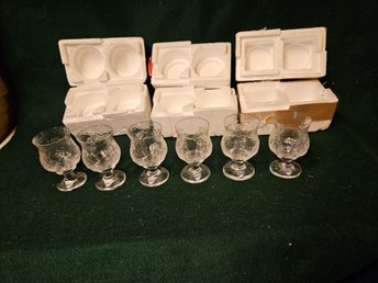 6 st Orrefors likörsglas "Påfågel". Oanvända.
