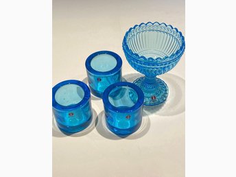 Iittala skål med 3 ljuslyktor. "Mariskooli", Iittala, Light Blue, 154mm