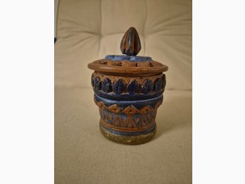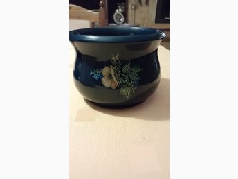 Svarvad blå Skål, kruka, Träskål B Eriksson Hemslöjd Retro, 15 cm dim. 10 cm hög
