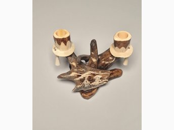 Handgjord renhorn ljusstake med samiskt motiv & signering Tornio vintage