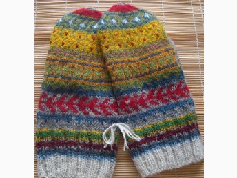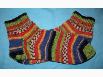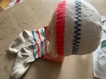Hantverk: handstickad ull mössa och ull raggsockar Pippi mönstrad 5/6 år