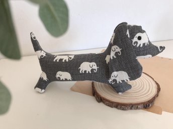 Tax dachshund i tyg från Svenskt Tenn, mönster Elefant