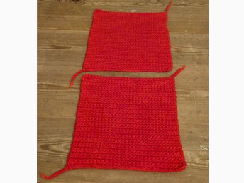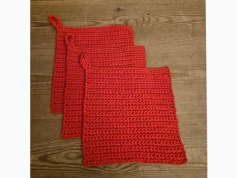3 Virkade Grytlappar I Rött Dubbelt Bomullsgarn Mått 20×19 Cm Oanvända