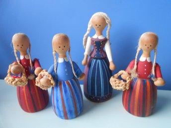 Hemslöjd/4 trädockor/SUSI -LULL//handmålade/Torsten Klintås/Vintage 60-talet