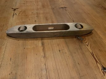 Gammal vävskyttel/ träskyttel/ skyttel med rullar för vävning. Rullskyttel.
