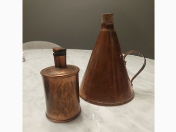 Kopparmått och liten kopparflaska, kopparsmedjan Eskilstuna