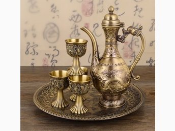 Antik bronsdrake och fenix-vinkanna antik kittel