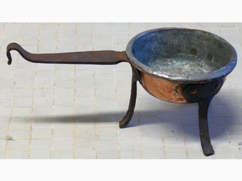Antik Kopparkastrull med Järn Handtag och Ben