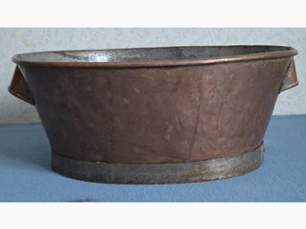 Äldre större Balja i koppar - med handtag.