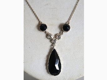 Vintage silver halsband med svarta och vita stenar stämplad S, kattfot.