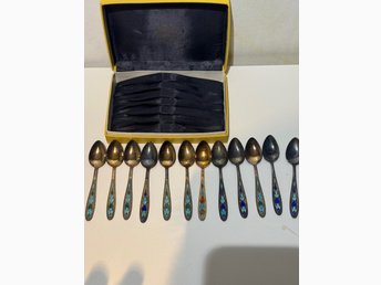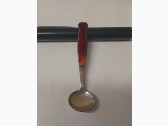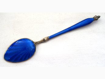 Norsk emajl sked i silver med mycket fint blå färg stämplad 930S.