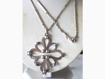Gammal stor hänge i silver med långt kedja stämplad 925, kattfot, S.