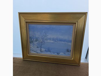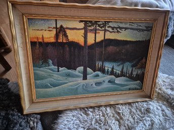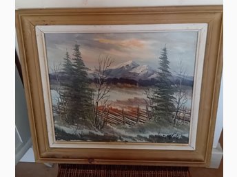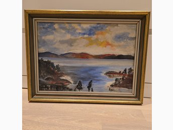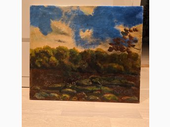 Oljemålning. Olja på duk. Eva Hubinette.Landskapsmotiv 19.12.1936