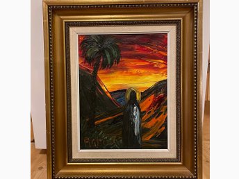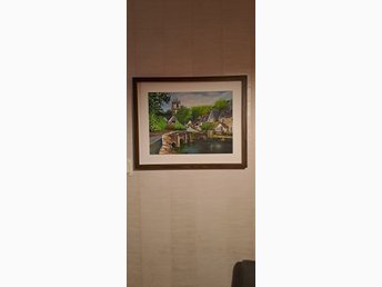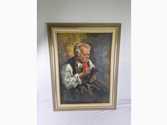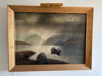 Gott använt skick Mkt gammal stor målning av GIAMAG I dobbel träram med glas