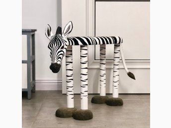 Handskuren, zebrarandig skobytesstol i massivt trä