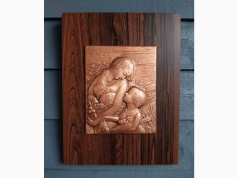 Moder och barn, kopparrelief - (från Japan, 1987) - Vintage